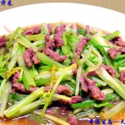 牛肉丝、芹菜、蚝油、料酒、葱、姜、花椒粉、细盐、白砂糖、味精、橄榄油。
