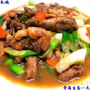 胡萝卜、芥蓝菜茎、青椒、乳鸽、香葱、细盐、细盐、料酒、生抽、白砂糖、胡椒粉、淀粉、味精、橄榄油。