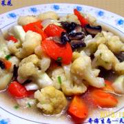 胡萝卜、蘑菇、花菜、香葱、细盐、白砂糖、胡椒粉、淀粉、味精、橄榄油。