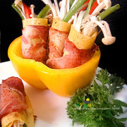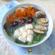 鲫鱼、花蛤、南瓜苗、豆腐、香菇、胡萝卜、青椒、红椒。