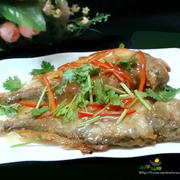 黄花鱼、红椒、香菜、盐、鸡精、料酒、姜葱蒜粉、胡椒粉、白糖、白醋、生粉、面粉。