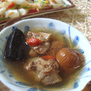 筒骨、莲藕、花生、干鱿鱼、姜、盐、醋。