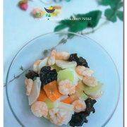 基围虾、山药、莴笋、胡萝卜、黑木耳、盐、糖、料酒。