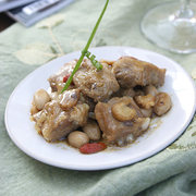 中鸽、栗子、蒜苗、姜、南乳、生抽、生粉、广东米酒、叉烧酱、蚝油、盐、清水。