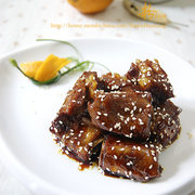 肋排、橙子、白糖、生抽、老抽、橄榄油、熟芝麻。