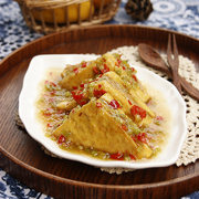 普宁豆腐、肉糜、虾米、指天椒、芹菜、葱白、姜、胡椒粉、大喜大烤肉酱、生抽、香油、盐、生粉。