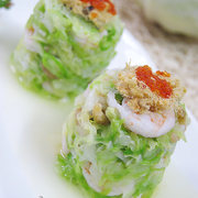 包菜、沙虾、虾米、猪肉松、红蟹籽、鸡油、姜、蒜、盐、鸡精、淀粉。