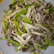 猪舌、香芹、豆皮、姜丝、蒜米、生粉。