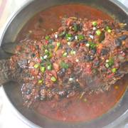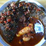 大头鱼、白鲢鱼尾、茄子、香麻油、陈醋、白糖、生抽、牛肉酱、料酒、盐、姜、蒜、味精。