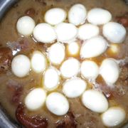 猪前脚、鸡蛋、生姜、白糖、丁香、八角、香叶、白寇、草果、陈皮、桂皮、山奈、沙姜、盐、味精。
