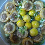 鸡蛋、猪肉、上海青、生姜、五香粉、生抽、香麻油、味精、盐、鸡精、葱、蒜、花生油。