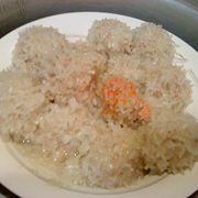 猪肉、胡萝卜、糯米饭、葱、盐、鸡蛋、淀粉、香油。