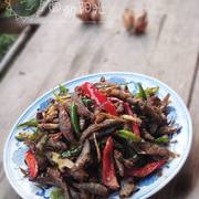野生小鱼干、青椒、红椒、姜、生抽、蒜、料酒。