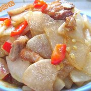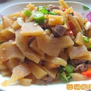 玉米笋、猪瘦肉、红辣椒、红薯粉、蒜。