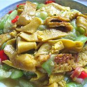 干面、笋干、猪瘦肉、鸡蛋、红薯粉、鲜虾、辣酱、豆豉香菇酱。