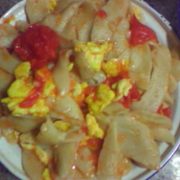 鸡蛋、西红柿、面粉、油、糖、盐。