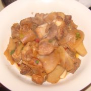 排骨、萝卜、葱、大蒜、干辣椒、桂皮、陈醋、豆豉油、老抽。