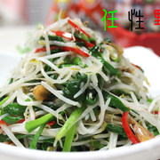 豆芽、韭菜、虾干、红辣椒、盐、鸡精。