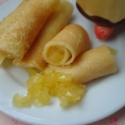 鸡蛋、牛奶、低粉、玉米淀粉、黄油、全蛋、白糖、盐、油、柠檬汁、味好美果酱、砂糖
