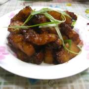 带皮五花肉、葱、姜、料酒、香叶、五香粉、冰糖、老抽、普通酱油、白糖、盐。