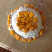 淡奶油、蛋糕面包、奥利奥、椰丝、芒果、糖粉、咖啡粉。