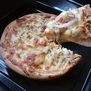 高筋面粉、温水、酵母粉、火腿、洋葱、甜玉米粒、青红椒、马苏里拉奶酪、披萨酱。