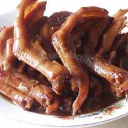鸭掌、植物油、盐、料酒、冰糖、姜、葱。