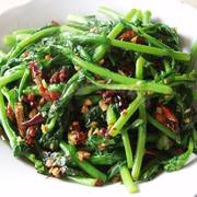 白油菜尖、植物油、姜粒、干花椒、干辣椒。