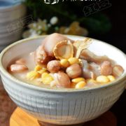猪蹄、黄豆、花生米、葱姜、料酒、盐、当归、人参、胡椒粉、鸡精。