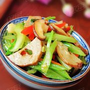 芹菜、鲜香菇、面筋、红椒、葱姜、盐、蚝油、生抽、糖、香油。