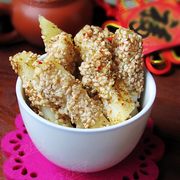 大土豆、鸡蛋、面粉、盐、淀粉、吉士粉、芝麻、辣椒粉、孜然粉。