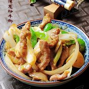 牛里脊肉、洋葱、青椒、葱姜、蒜瓣、料酒、糖、黑胡椒粉、蒸鱼豉油、生抽、盐、淀粉、香油、蛋清。