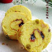 鸡蛋、低粉、南瓜泥、色拉油、白糖、蜜豆、蓝莓果酱、柠檬汁。