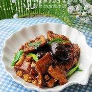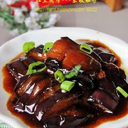 嫩茄子、猪肥瘦肉、白糖、盐、老抽、生抽、料酒、鸡精、水淀粉、葱姜、鸡汤。