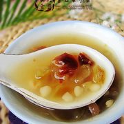 金丝蜜枣、葡萄干、青梅、话梅、桂圆干、薏米、淀粉、白糖、糖桂花。