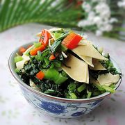 雪菜、千张、红椒、葱、姜、盐、糖、鸡精、香油。