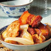 大白菜、油豆腐、五花肉、葱姜、大料、桂皮、香叶、老抽、生抽、糖、料酒、盐、鸡精。