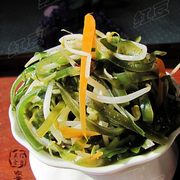 海带丝、绿豆芽、胡萝卜、蒜苗、葱、盐、糖、花椒、香醋、鸡精、香油、姜。