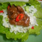 米饭、牛肉、小红米椒、黄瓜、生菜、葱花、盐、味精、鸡精、橄榄油、藤椒油。