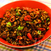 青豆、鱼籽、生姜、大蒜、干尖椒。