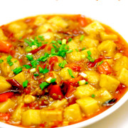 米豆腐、红辣椒、生姜、大蒜、香葱、干尖椒。