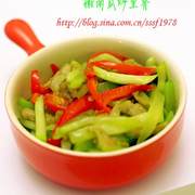 嫩莴苣、嫩莴苣、盐、鸡精、胡椒粉、红辣椒、白醋、料酒、柠檬汁、香油。