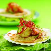 鲜虾、蒜末、葱、姜、蛋清、扇贝、生粉。