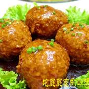 猪肉、生粉、马蹄、鸡蛋、盐、料酒、鸡精、胡椒粉、老抽、姜末、水。
