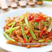 西芹、红辣椒、卤牛肚、盐、鸡精、胡椒粉、植物油、水。
