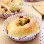 面粉、牛奶、淡奶油、糖、盐、鸡蛋、干酵母、黄油、全蛋液、蔓越莓干。