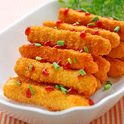 鸡脯肉、面粉、面包糠、鸡蛋、料酒、盐、鸡精、胡椒粉。