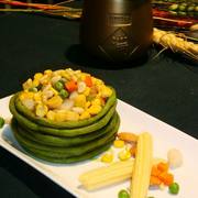 豌豆、水磨年糕、玉米笋、松仁、盐、白糖、花生油、干贝素。
