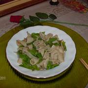 鲜蘑、黄瓜、胡萝卜、鸡蛋、辣椒、青豆、植物油、海鲜酱油、盐、花椒粉、鱼油、米醋。