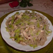 米粉干、鸡肉、香葱、黄瓜、植物油、蚝油、盐、花椒、生抽。